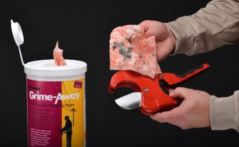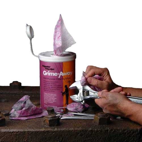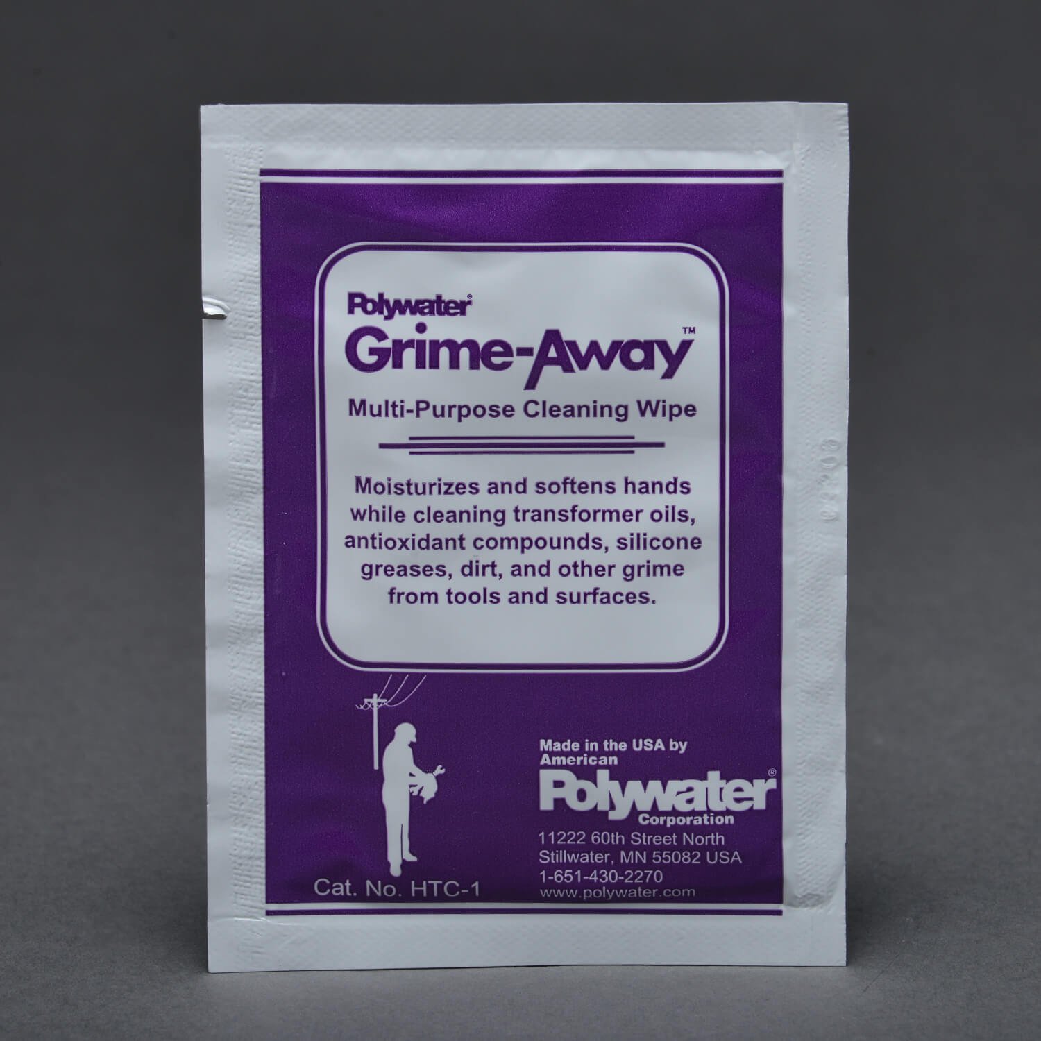 Limpiador Grime-Away de Polywater elimina rápida y eficazmente fluidos hidráulicos, grasas de siliconas, adhesivos y otros de transformadores, vehículos, maquinaria pesada, herramientas y manos, con el propósito de conservar un entorno limpio y seguro.