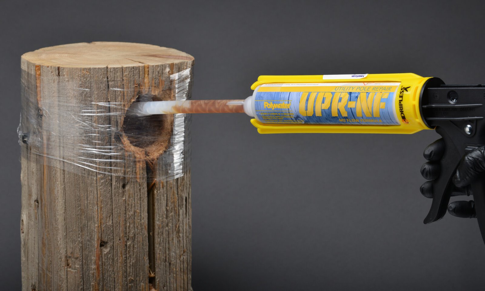 Sellador de Reparación de Postes de Polywater facilita la reparación de daños, grietas, y orificios de herrajes de las líneas de alta tensión y de los pájaros carpinteros en los postes de madera de servicio publico. Compuesto por resina y endurecedor, los mismos que están especialmente formulados para expandir y rellenar cavidades de forma irregular para proteger los postes de la putrefacción y restaurar el poste a una condición segura.